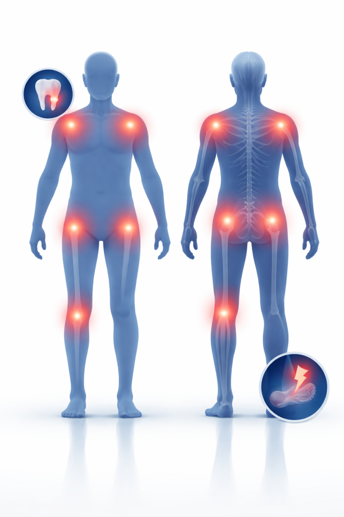 Bei den Schmerzorten dominieren – wie bei vielen älteren Menschen – muskuloskelettale Ursachen: Arthrose (häufig Knie, Hüfte, Hände), degenerative Wirbelsäulenveränderungen, chronischer Rückenschmerz, schmerzhafte Bewegungseinschränkungen, Kontrakturen sowie Sturzfolgen und Frakturen. Das erklärt, warum geriatrische Schmerzleitlinien inhaltlich stark auf muskuloskelettale Schmerzbilder fokussieren. Gleichzeitig gibt es Bereiche, die in der Demenzversorgung besonders häufig übersehen werden. Dazu zählen orofaciale und dentale Schmerzen: Eine Meta-Analyse aus 2024 schätzt die gepoolte Prävalenz orofacialer Schmerzen bei Menschen mit Demenz oder leichter kognitiver Störung auf rund 19 Prozent. Mundschmerzen zeigen sich dabei oft unspezifisch, etwa durch Essverweigerung, Unruhe, Abwehr beim Zähneputzen oder eine veränderte Mimik. Ebenfalls unterschätzt werden „körperliche Basics“ mit hoher Schmerzlast wie Obstipation, Harnverhalt, Druckstellen, Hämatome, ungünstige Lagerung oder schlecht sitzende Hilfsmittel. Ein klassischer Überblick zu Schmerz bei Demenz betont, dass Schmerz bei Demenz häufig und oft komplex ist und dass gerade behandelbare Ursachen konsequent gesucht werden sollten.